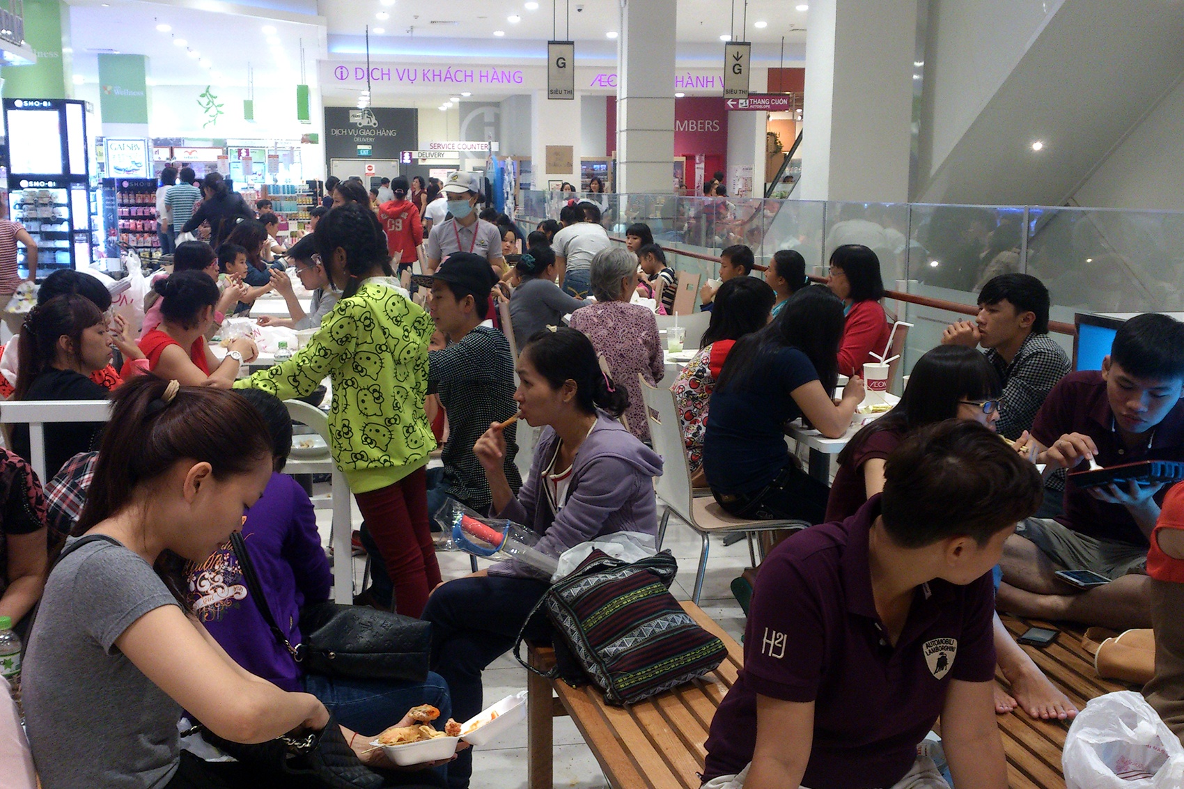 | Bên trong các siêu thị, đặc biệt là khu vực ăn uống rất náo nhiệt, mọi người tranh nhau từng chỗ ngồi. |