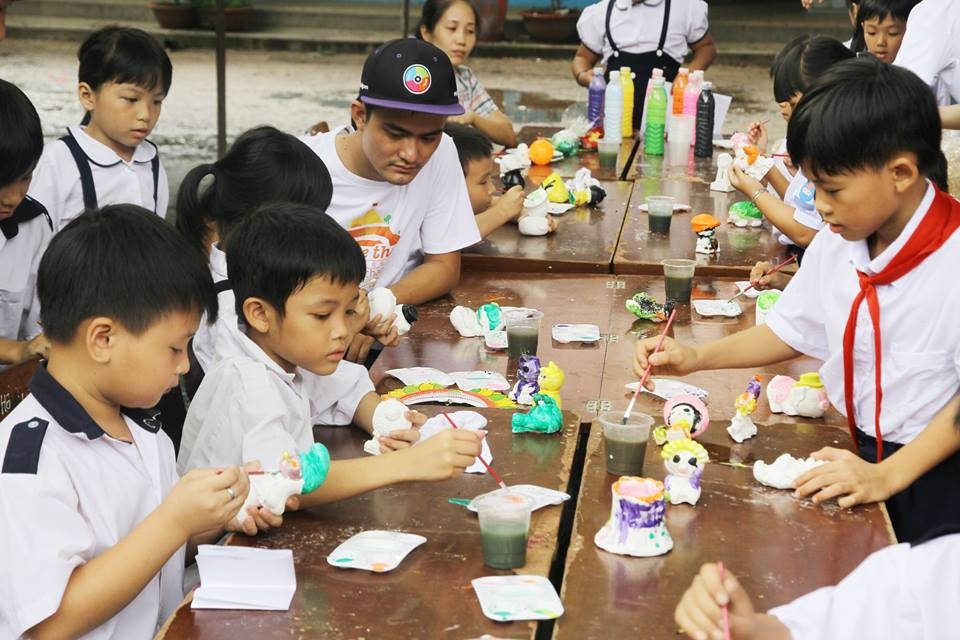 Các em hào hứng tham gia vào những trò chơi do tình nguyện viên tổ chức, như trò tô tượng…
