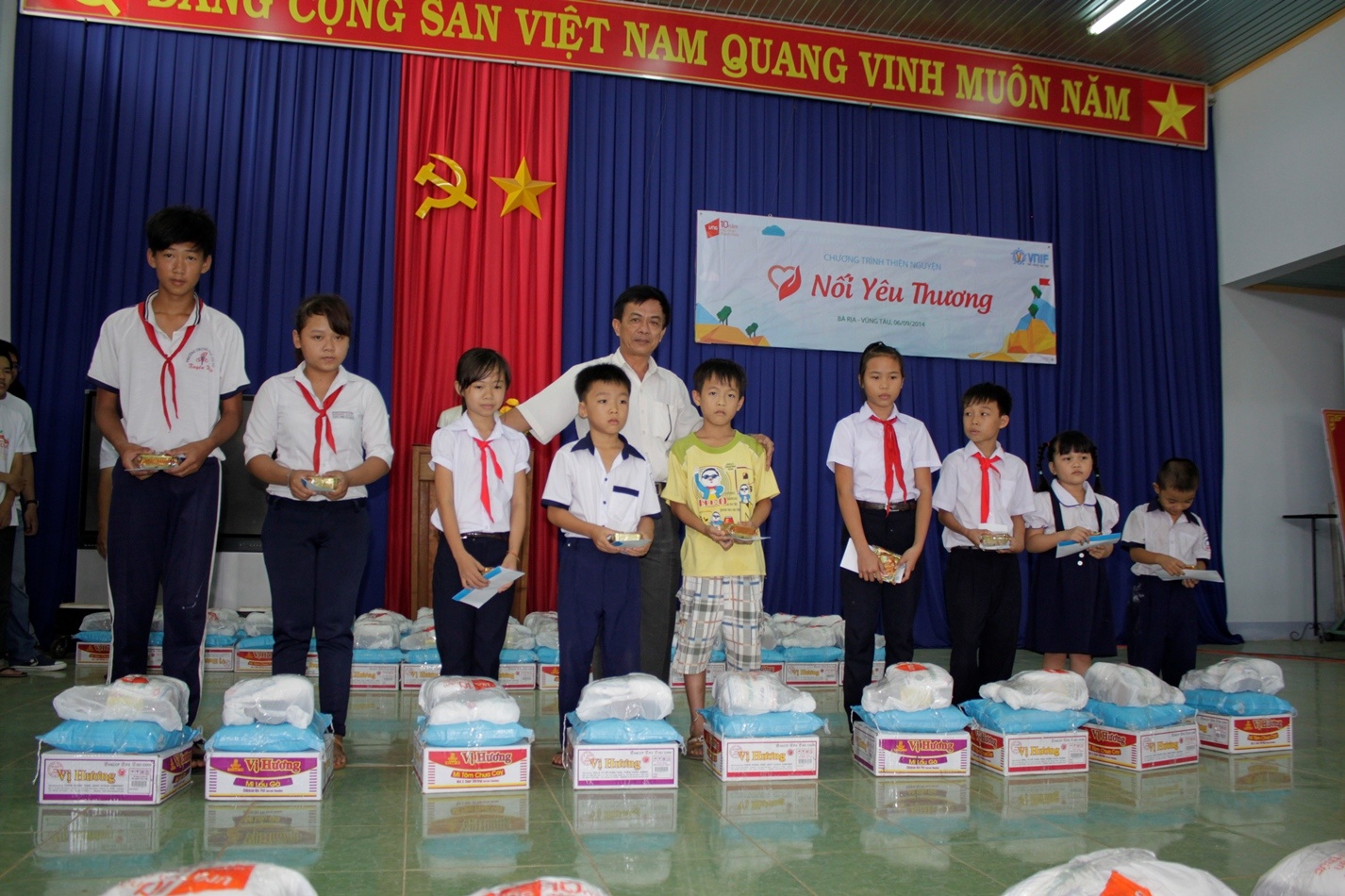 | Tại xã Tân Lâm, huyện Xuyên Mộc, tỉnh Bà Rịa – Vũng Tàu, các tình nguyện viên trao 100 phần quà cho 40 học sinh nghèo và 60 hộ gia đình khó khăn. Mỗi học sinh nghèo được nhận thêm 100.000 đồng tiền mặt. 4 gia đình chính sách của xã cũng được nhận 1 triệu tiền mặt/ hộ. |