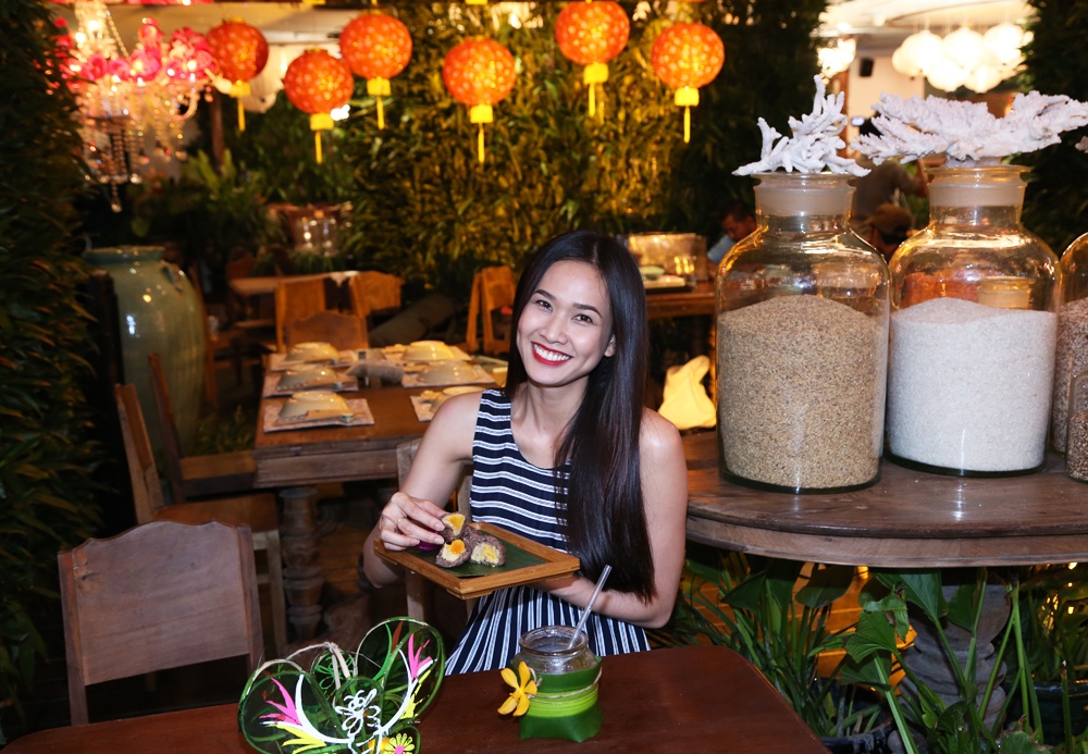 | Hoa hậu Dương Mỹ Linh cho biết, cô rất thích ăn bánh trung thu, đó là niềm vui tuổi thơ của cô. Khi biết ở nhà hàng Gạo có loại bánh trung thu đặc biệt làm từ gạo thảo dược, cô đã gọi ngay món này mời các bé. |