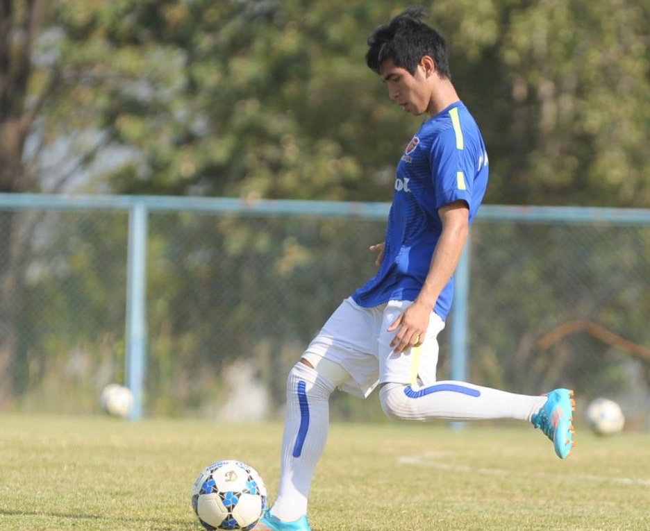 | A Sân từng đá chính ở vị trí trung vệ trong trận hoà 3-3 của HAGL trước Navy FC (khuôn khổ chuyến tập huấn 10 ngày tại Thái Lan của đội bóng phố Núi). |