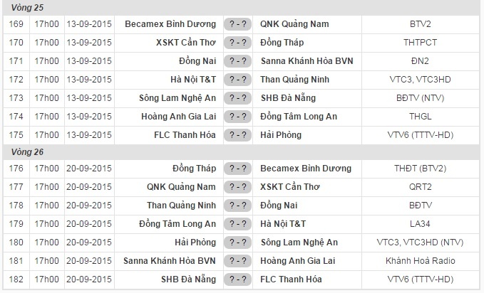 | Lịch thi đấu 2 vòng cuối (vòng 25,26) của V.League 2015. |