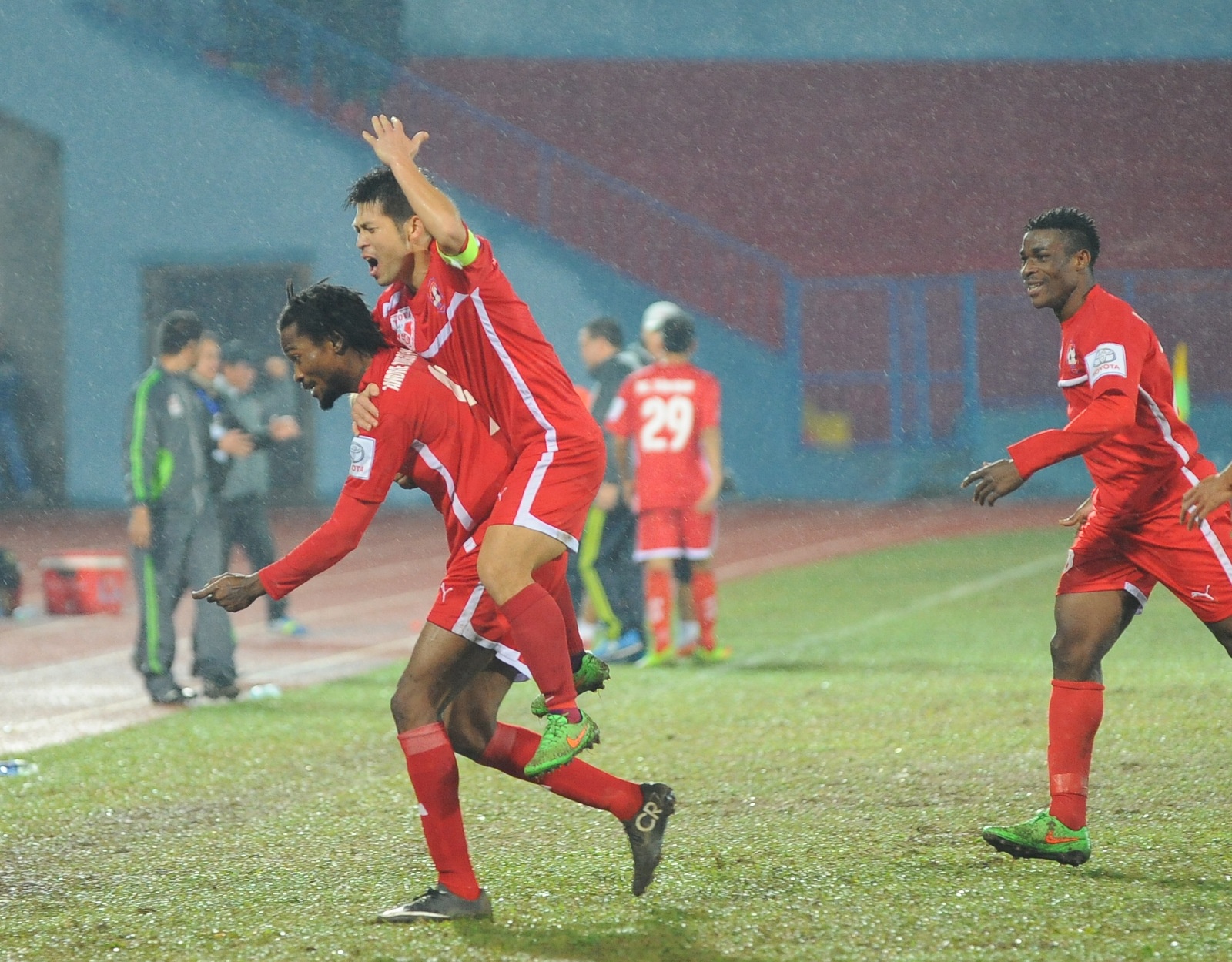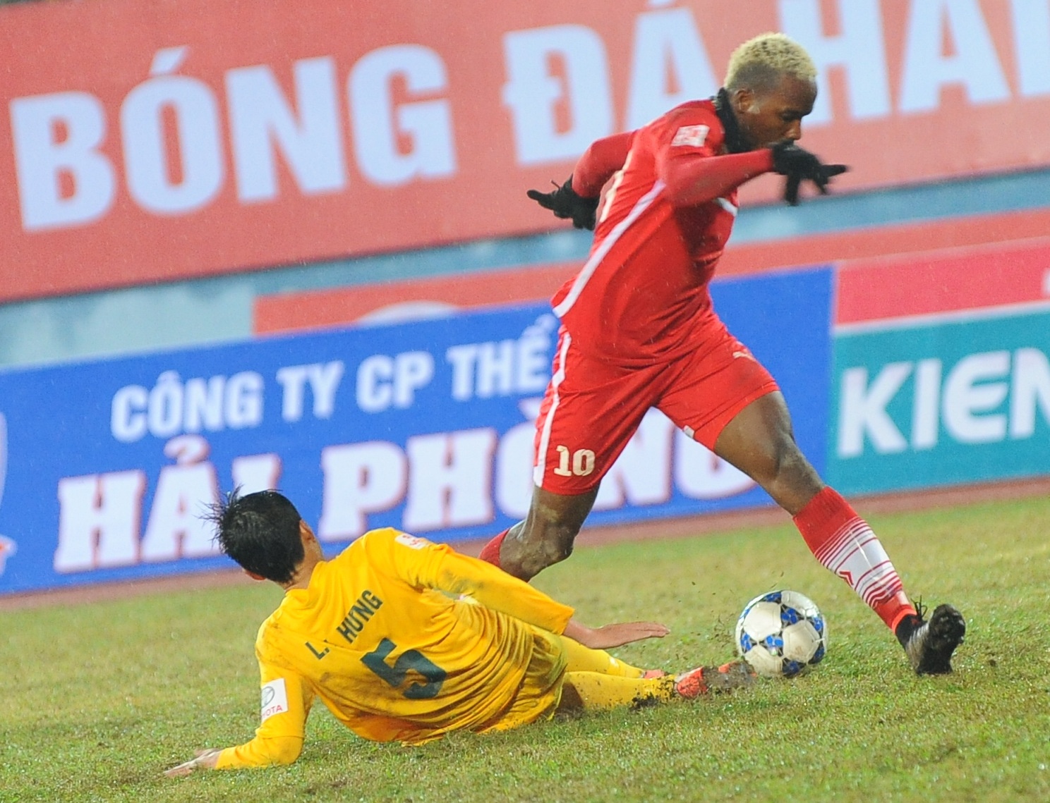 | Fagan ăn mừng bàn thắng nâng tỷ số lên 2-0 cho CLB Hải Phòng. |