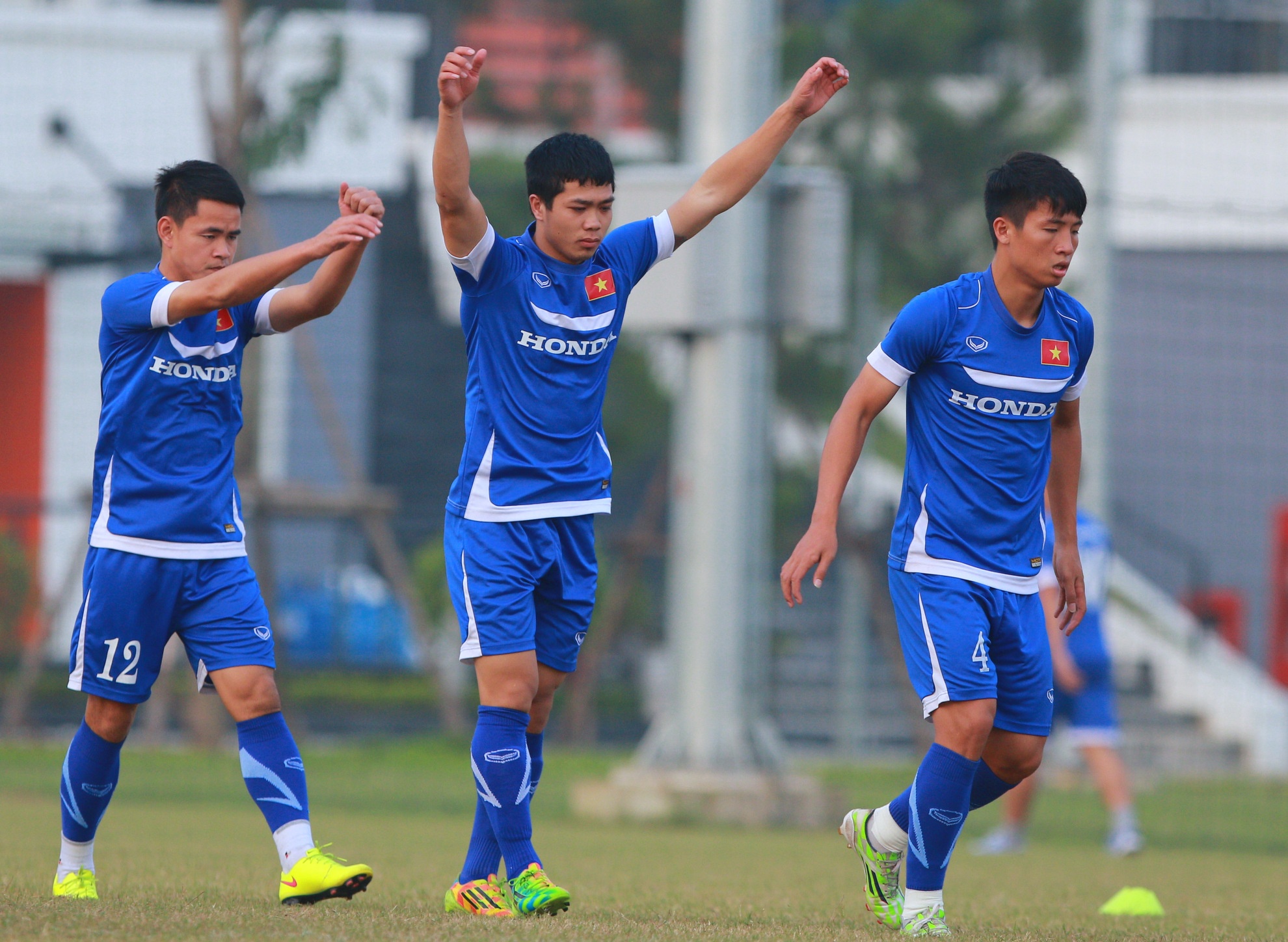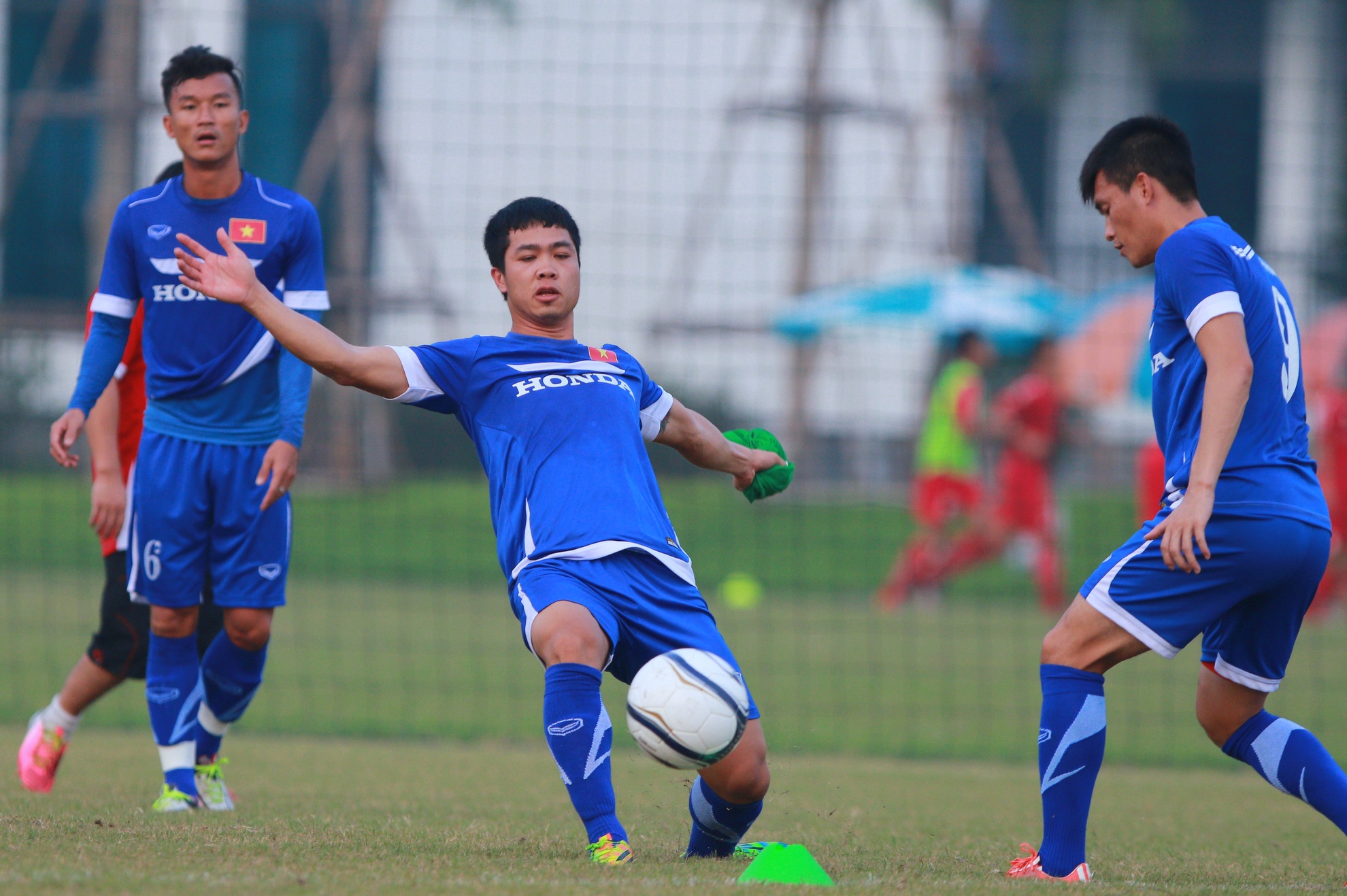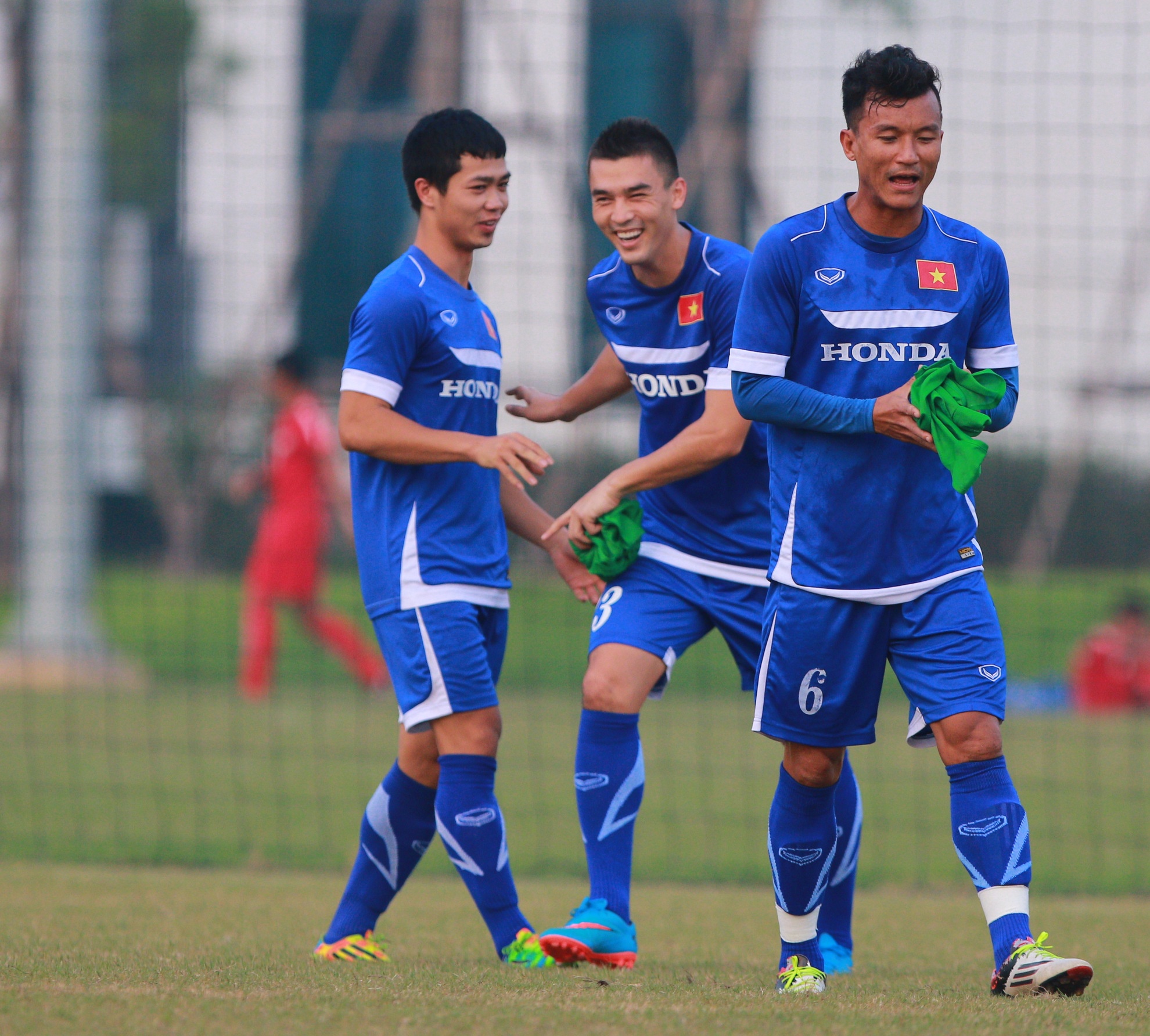 | HLV Miura bố trí Công Vinh, Thành Lương, Văn Quyết đá các quả phạt (tạt) bên phía cánh trái (theo hướng tấn công của ĐTVN). Huy Toàn được tin tưởng thực hiện các tình huống phạt cánh phải. Riêng Công Phượng, nhà cầm quân người Nhật Bản thử nghiệm tiền đạo xứ Nghệ đá phạt từ cả 2 cánh. |