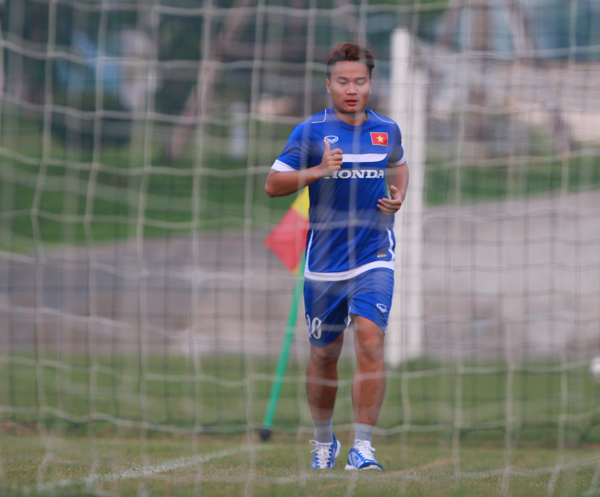 | Trong khi các đồng đội thích thú chơi bóng ma, Trần Phi Sơn phải tập riêng do bị căng cơ sau buổi tập chiều qua (30/9). Theo các bác sĩ, tiền vệ của SLNA phải nghỉ vài ngày trước khi trở lại tập luyện với bóng. |