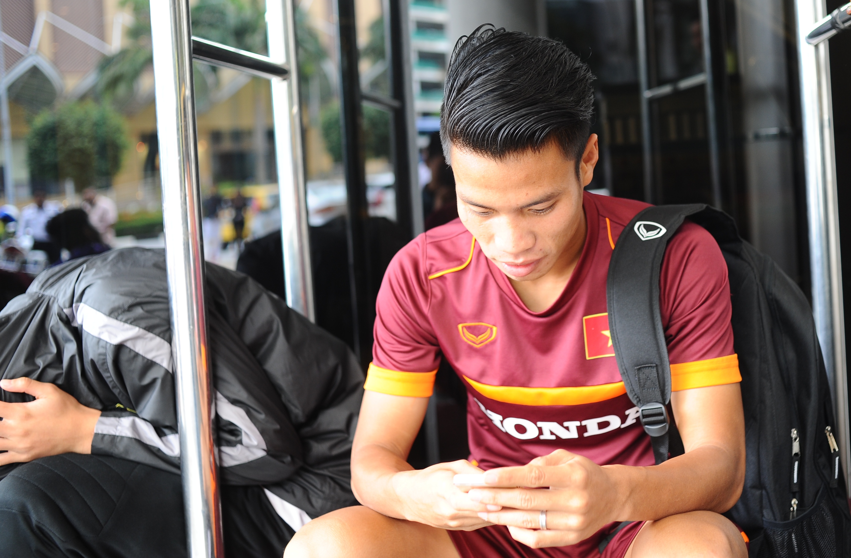 | Các cầu thủ Olympic Việt Nam sử dụng điện thoại theo đúng quy định của HLV Miura. |