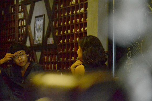 Mai Khôi cùng một người bạn “tám” chuyện khá sôi nổi trong quán cà phê trên đường Hoàng Văn Thụ. Được biết đây là quán mà nữ ca sĩ hay lui tới khi đến Đà Nẵng.