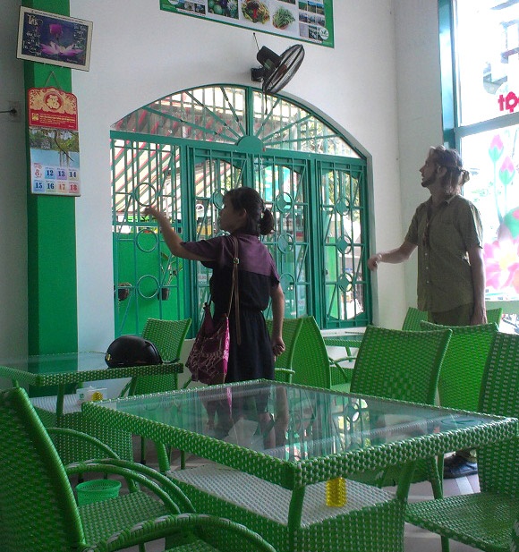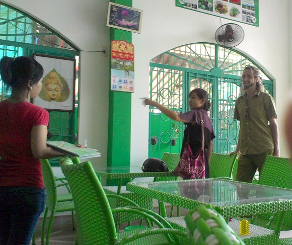 Sau khi chia tay người bạn của mình, Mai Khôi cùng hôn phu người Úc dùng bữa tại một nhà hàng chay trên đường Hoàng Diệu