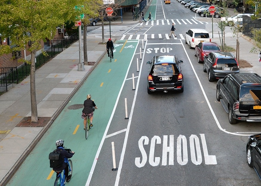 | Làn đường dành cho xe đạp tại Mỹ. Ảnh: NYC.gov. |