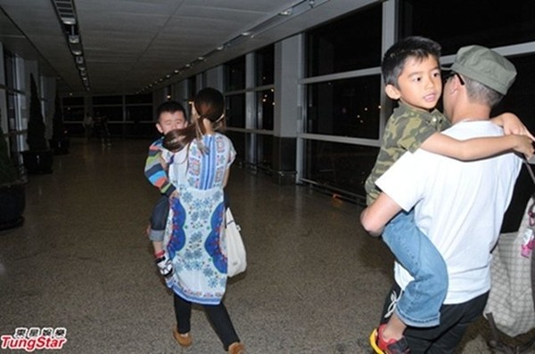 | Tối 7/10, cánh phóng viên bắt gặp Trương Bá Chi cùng hai con trai Lucas, Quintus vừa về đến sân bay Hong Kong. Trương Bá Chi ăn mặc áo phao trắng giản dị, cố gắng đeo kính và khẩu trang để tránh gây chú ý nhưng vẫn bị các tay săn ảnh phát hiện. |