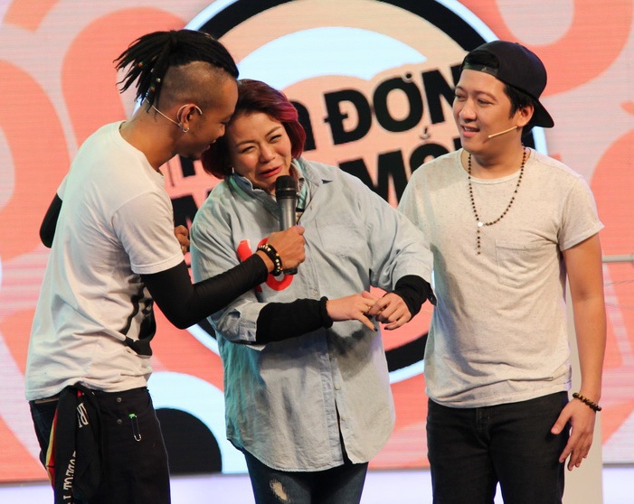 | Ngoài đời, Trường Giang và Hoàng Phi khá thân thiết nên khi kết hợp trên sân khấu họ rất ăn ý, mang đến những tình huống "cười ra nước mắt". |