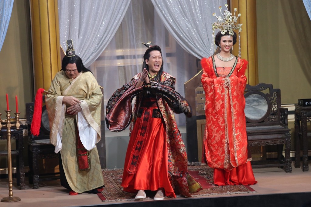 Sau khoảnh khắc "đứng hình" ngắn ngủi vì sự nhanh nhạy của khách mời, Trường Giang có chút lúng túng. Anh phì cười trong lúc diễn nhưng nhanh chóng lấy lại bình tĩnh và ra lệnh: “Người đâu! Chuẩn bị cách chức Phương Nhã”. Quyết định của "hoàng thượng" Trường Giang khiến khán giả có mặt trong trường quay cười lớn.