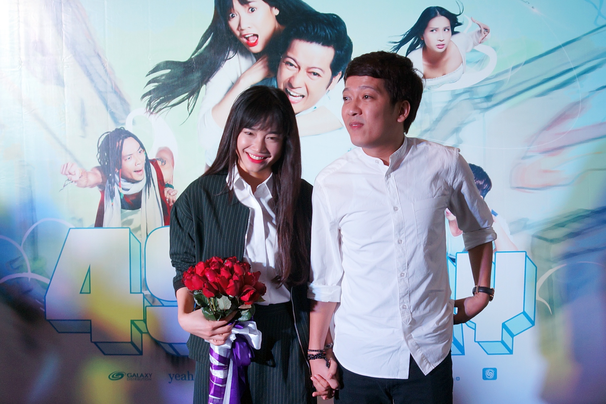 Bất chấp tin đồn tình cảm, cặp diễn viên chính của "49 ngày" vẫn không rời tay nhau khi ra mắt phim tại thủ đô.