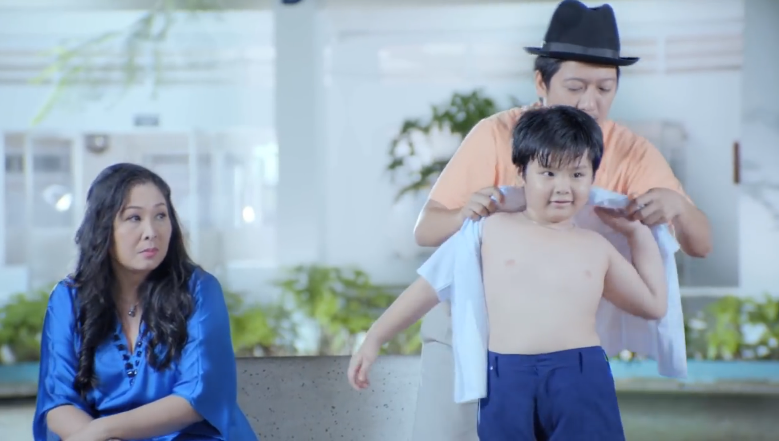 | Trong phim Trường Giang nhập vai một người bố có con trai đang tuổi hiếu động, nên thường xuyên đổ mồ hôi, vì thế áo quần luôn có mùi và bị xỉn màu. |