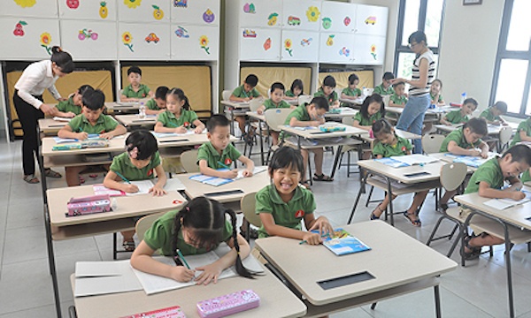 | Các lớp học khang trang, sạch sẽ với các tủ đồ cá nhân tiện lợi. Mỗi lớp chỉ khoảng 25 em, có 2 giáo viên dạy. Mức học phí tại trường cũng không hề rẻ. |