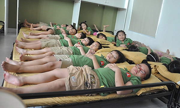 | Tại các lớp học học sinh được nằm đệm để ngủ trưa. |