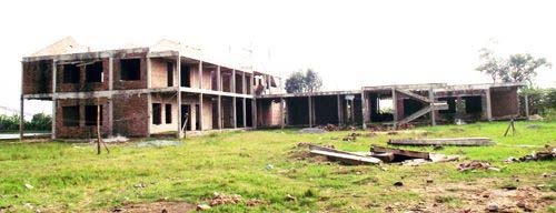 | Nhà mới được đầu tư tiền tỷ xây dựng khang trang không biết đến bao giờ mới được khánh thành, còn các em nhỏ của thôn thì hàng ngày vẫn phải đi lớp tại ngôi trường cũ nát và có nguy cơ sập bất cứ lúc nào. |