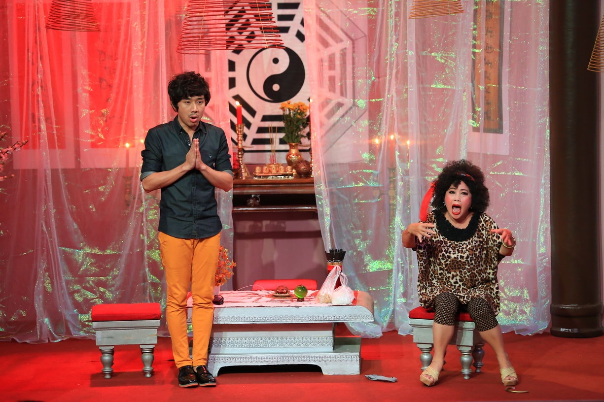 Sau lần bắt bẻ đầu tiên, Phi Phụng bắt đầu nhập vai hơn và cô ứng xử cũng khéo léo hơn. Phi Phụng hoàn toàn nhập vai và làm tốt khi Trấn Thành yêu cầu cô gọi hồn vợ về nhập vào cô để nói chuyện với anh. Kết thúc tình huống, Hoài Linh cũng công nhận: “Khi mở cánh cửa này bước vào phòng gặp Trấn Thành là em thấy chị mệt mệt rồi. Nếu xử lý không tinh tế, không nhạy bén thì khó đu theo anh chàng này lắm. Em phải nói với chị một điều rằng chị sẽ mãi là thần tượng trong lòng của em”. |