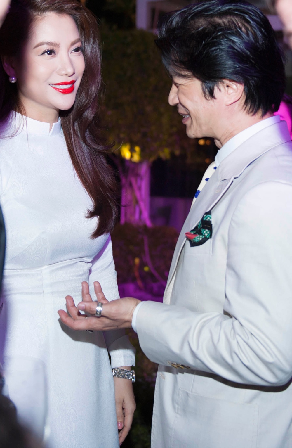 | Nam diễn viên Dustin Nguyễn cũng đến ủng hộ quỹ. Anh trò chuyện sôi nổi cùng người đẹp 39 tuổi. |