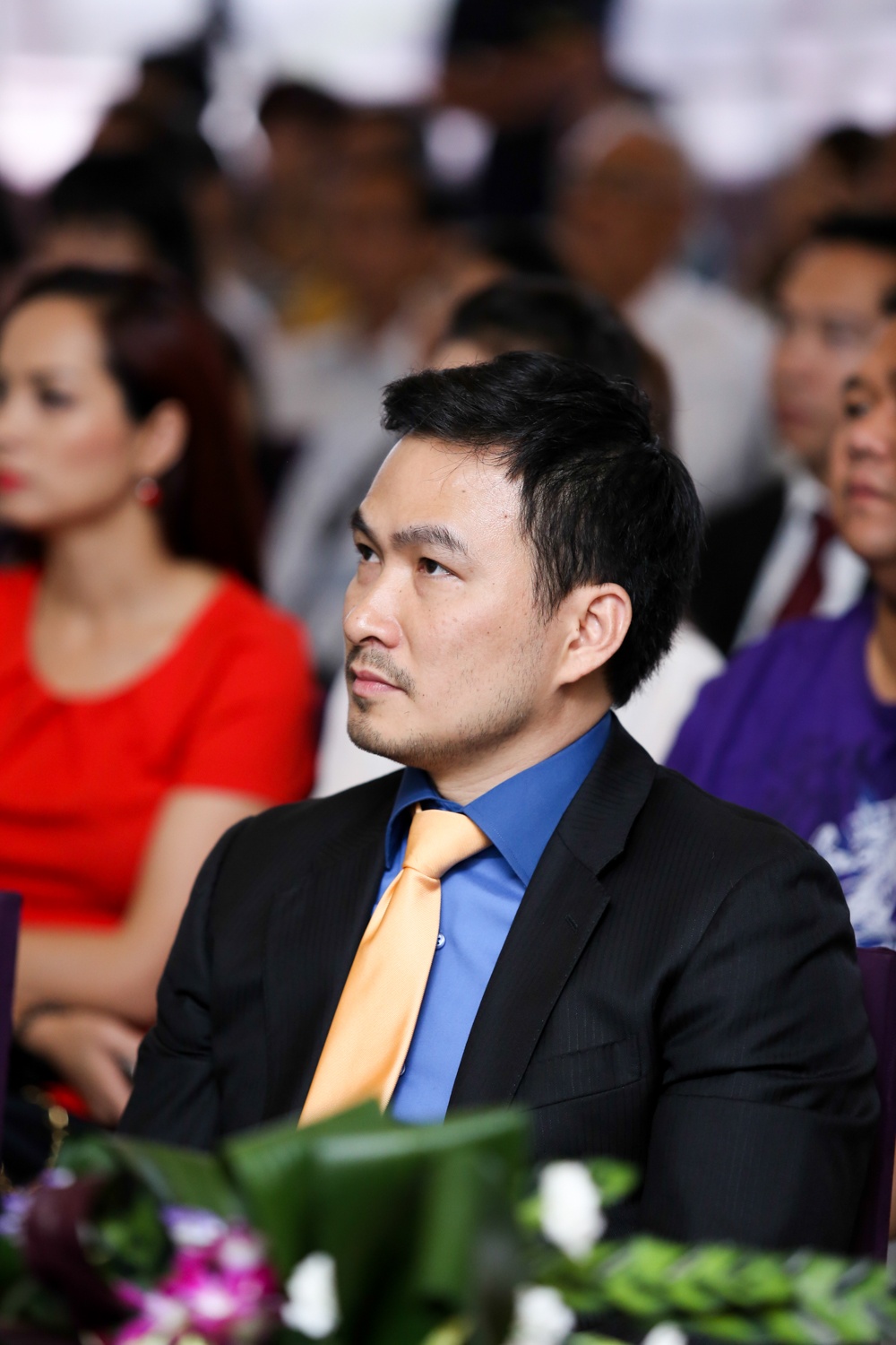 | Chi Bảo trầm ngâm trước phát biểu của các đại diện. Anh là một trong những người phát động và luôn hết lòng với quỹ từ thiện đặc biệt này. |