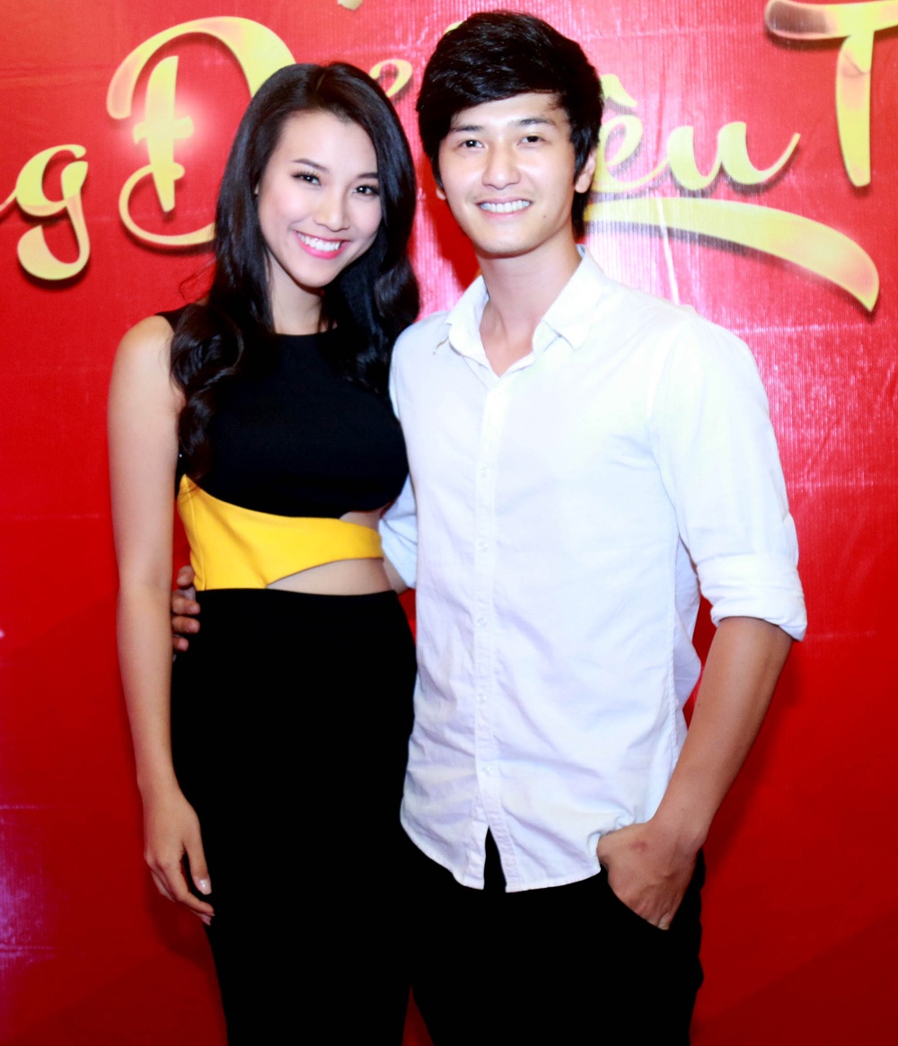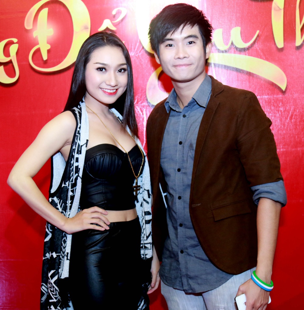 | Cặp tình nhân Huỳnh Anh - Hoàng Oanh cũng tham gia sự kiện ý nghĩa. Nữ MC The Remix diện đầm cut -out khoe eo thon. |