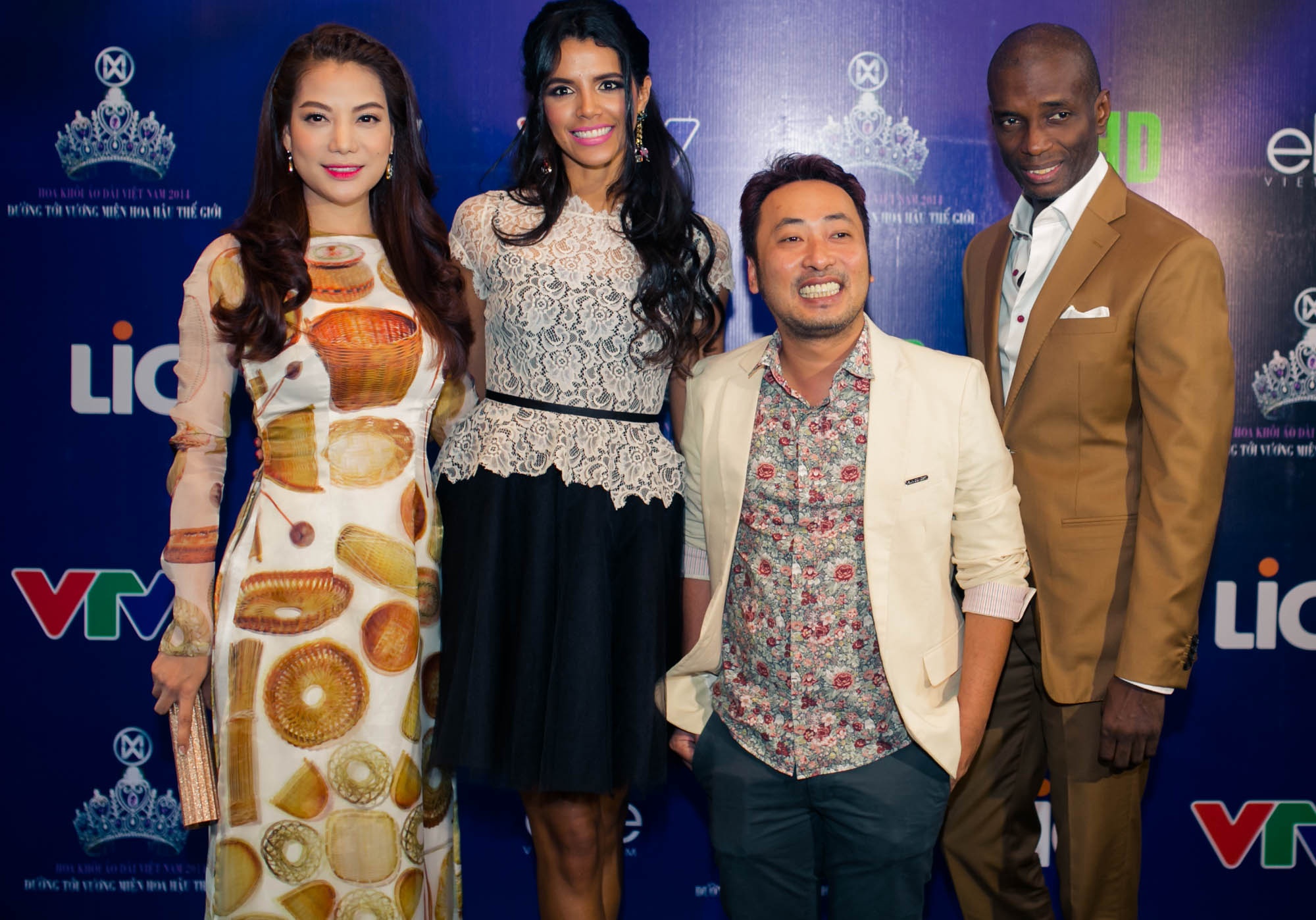 | Ivian Sarcos hào hứng khi được mời chụp ảnh chung cùng các thành viên ban giám khảo cuộc thi, đạo diễn Quang Dũng, Trương Ngọc Ánh và giám đốc sáng tạo Henri Hubert. |