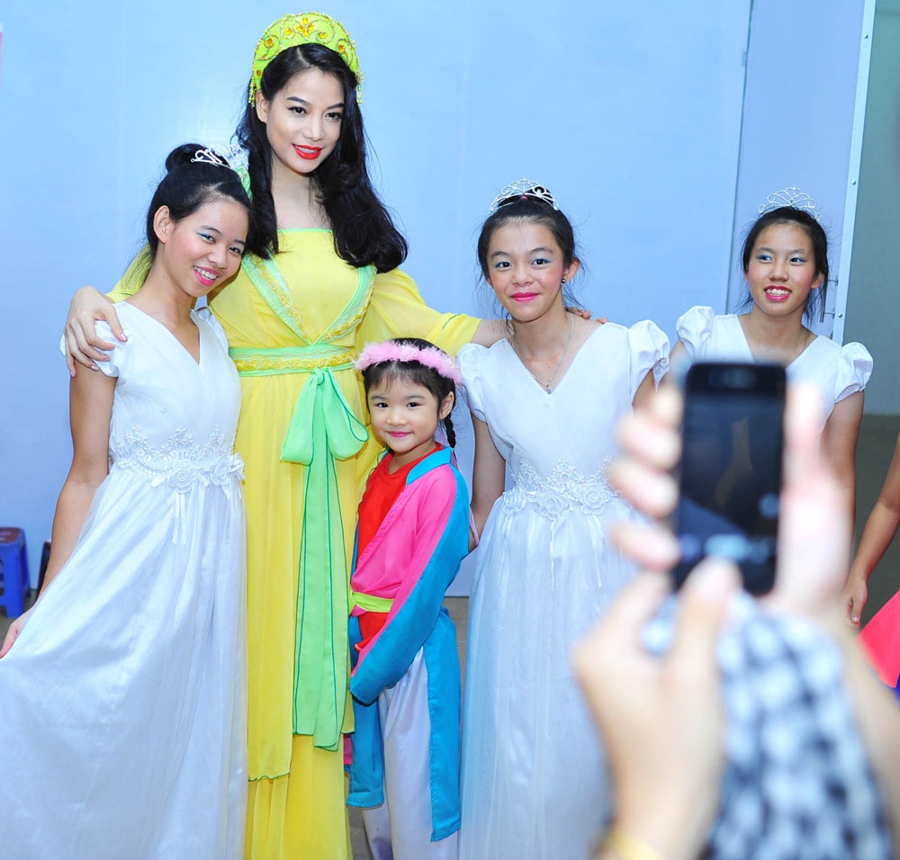 | Tối 24/8, Trương Ngọc Ánh cùng con gái Bảo Tiên đã xuất hiện tại một chương trình từ thiện tại TP.HCM. Nữ diễn viên Hương Ga hóa thân thành Hằng Nga phát quà cho trẻ em nghèo. |