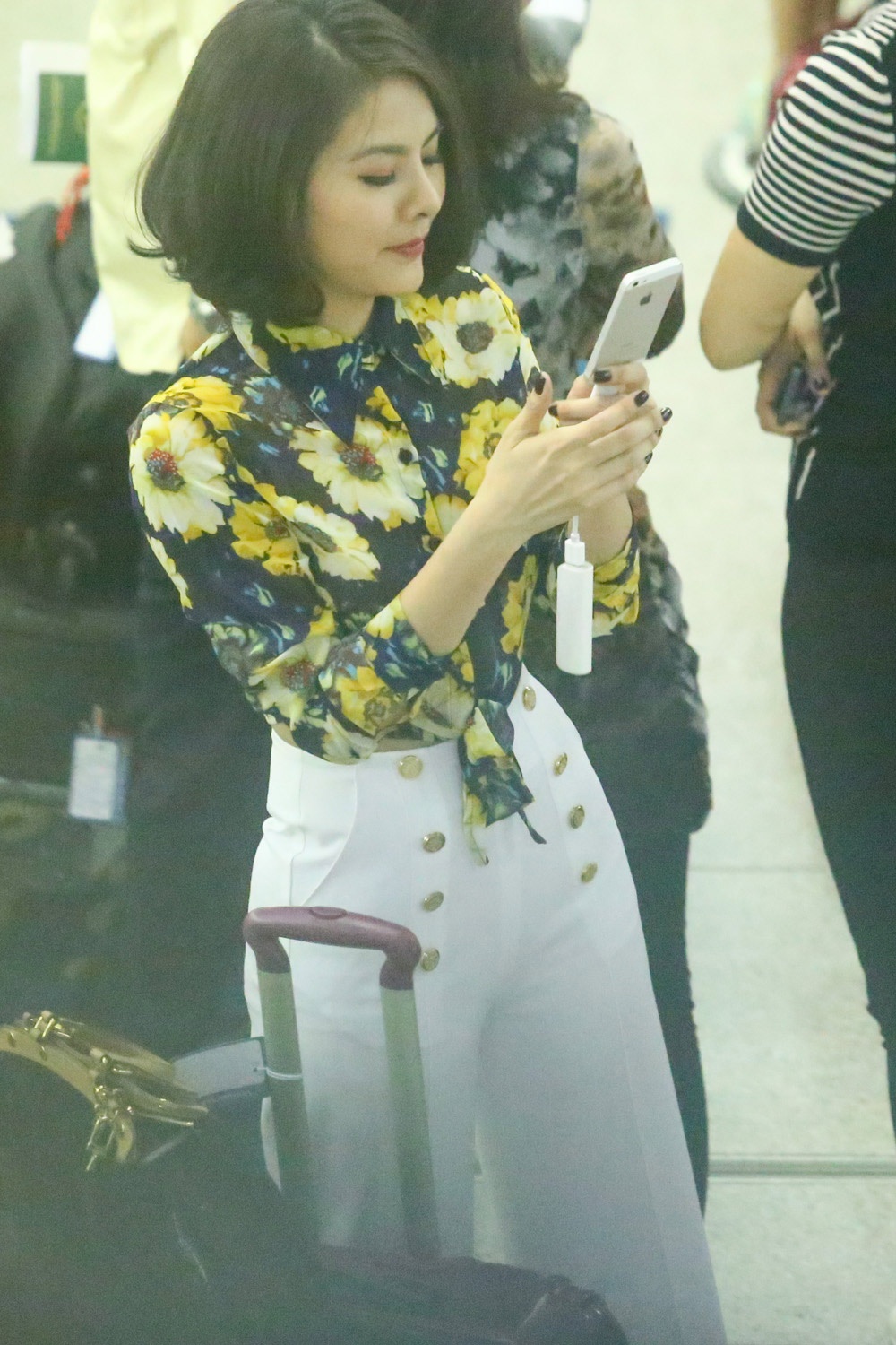 | Tại sân bay, nữ giám khảo Project Runway thu hút sự chú ý với phong cách thời trang năng động, khỏe khoắn. Do chuyến bay đường dài nên Trương Ngọc Ánh diện trang phục thoải mái, đi giày thể thao thay vì giày cao gót. |
