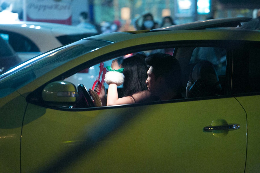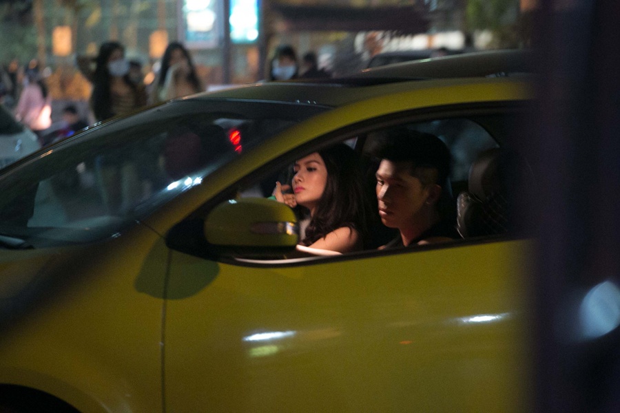 Sau khi dừng lại ở một cửa hàng trên phố, Lương Bằng Quang cầm lái hộ tống Trương Nhi đến điểm hẹn.