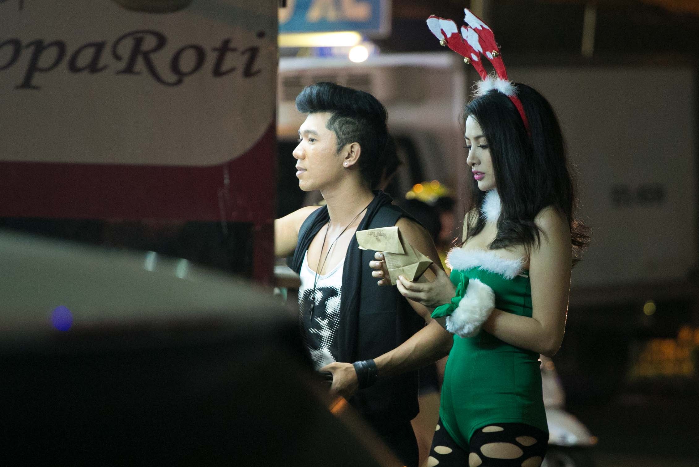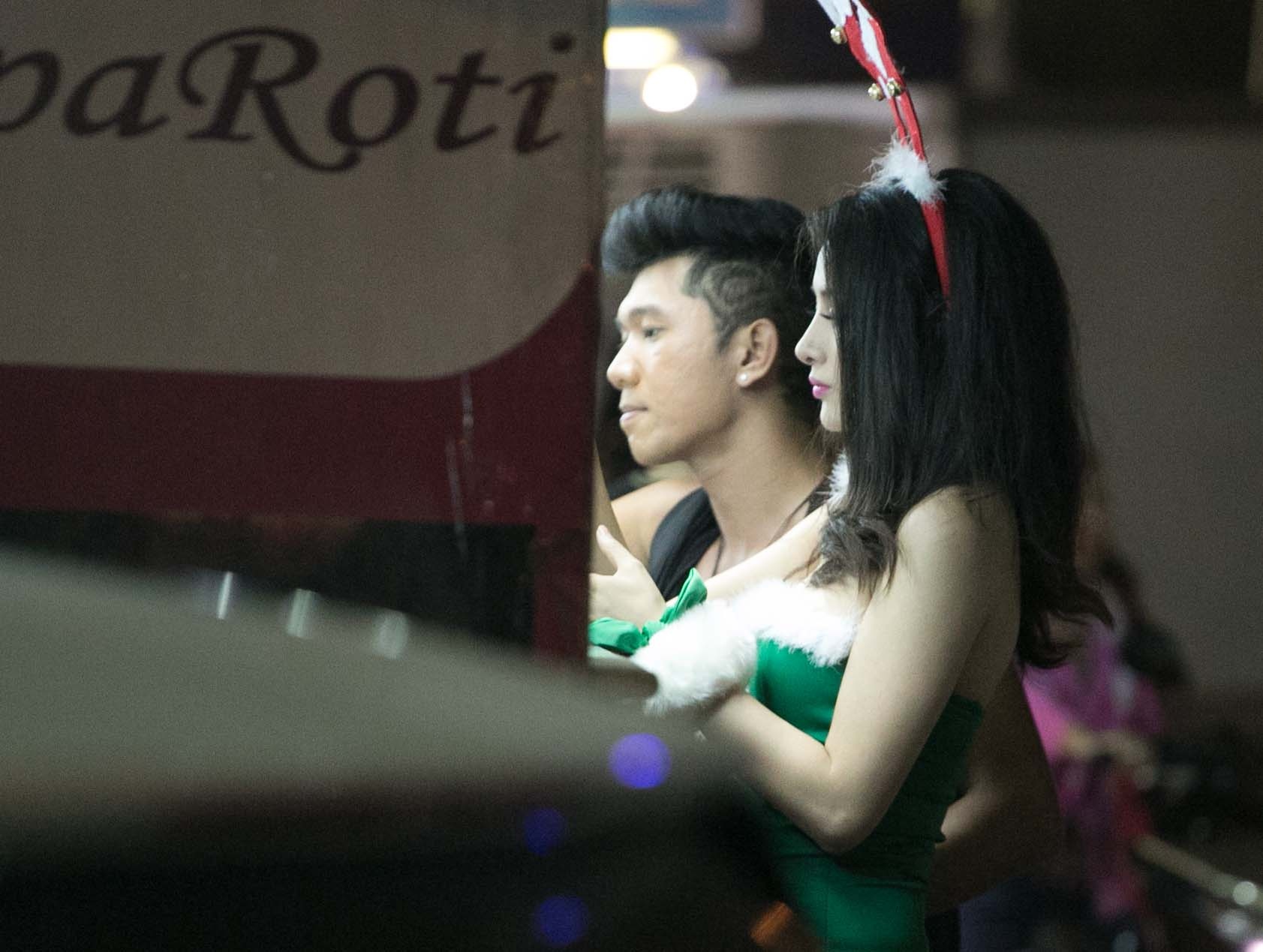 Diện trang phục gợi cảm với quần legging ôm sát rách ngẫu hứng, đeo chiếc băng đô tuần lộc đậm chất Giáng sinh, nữ diễn viên Âm mua giày gót nhọn bị bắt gặp khi đang xuống phố cùng bạn trai Lương Bằng Quang vào tối qua (24/12). Trương Nhi khá bắt mắt với phong cách thời trang táo bạo, còn bạn trai của cô đơn giản với trang phục đời thường khỏe khoắn. Cả hai thu hút nhiều ánh nhìn khi dừng lại một cửa hàng trên phố.