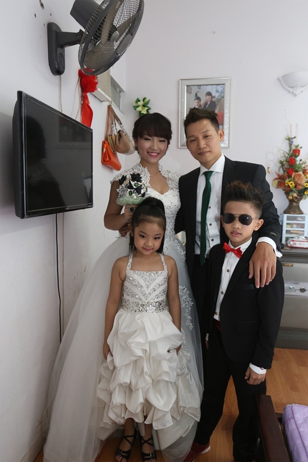 Trước đó, cô dâu tạo dáng xì tin chờ đợi.