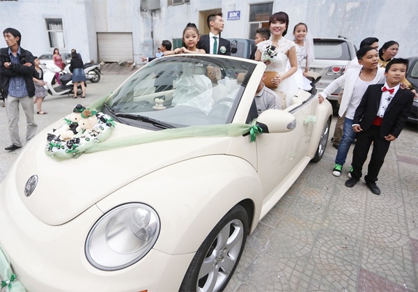 15h chiều nay, chú rể đã đến nhà cô dâu với chiếc xế hộp độc đáo.