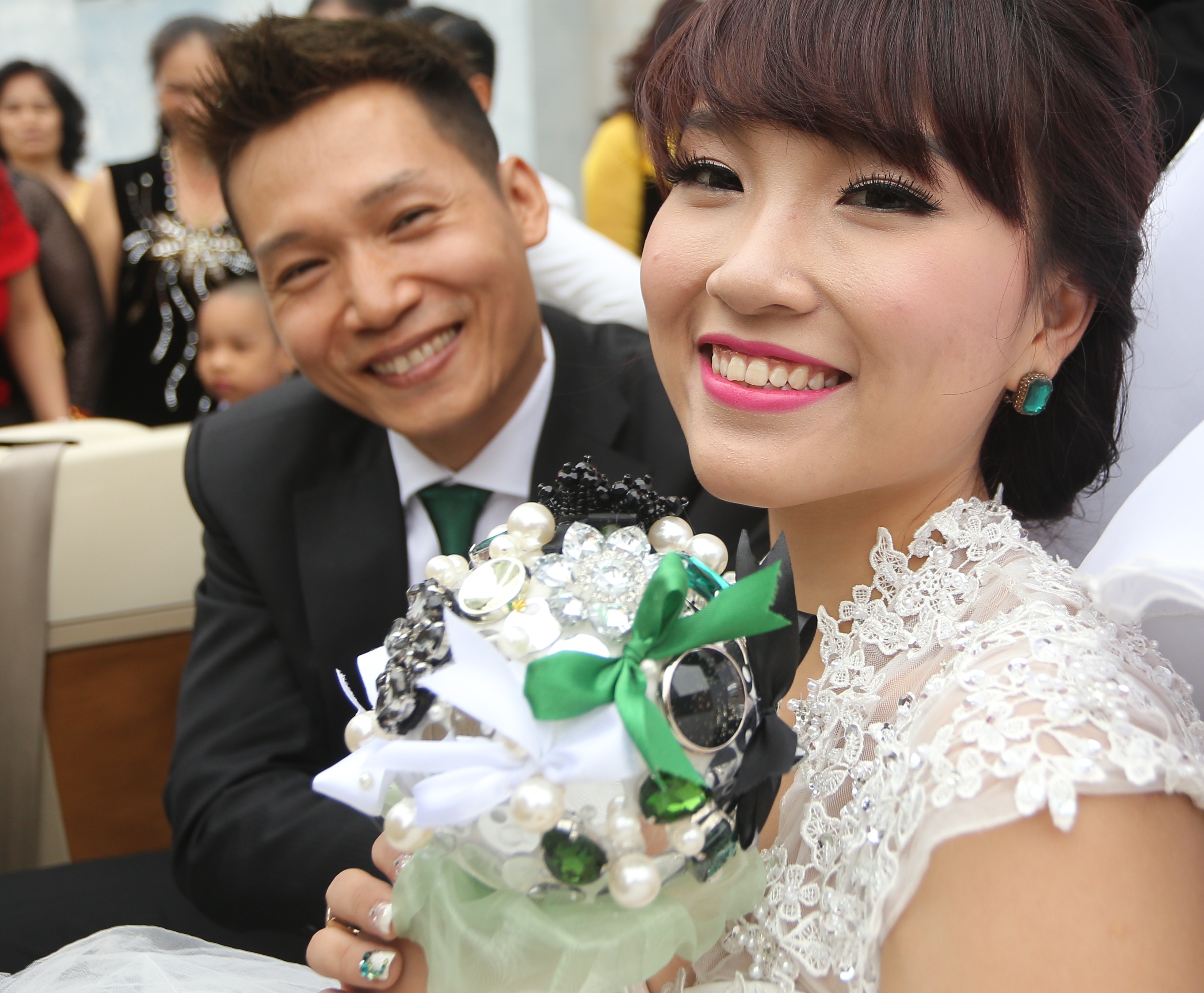 Cặp đôi rất vui vẻ trong ngày trọng đại.