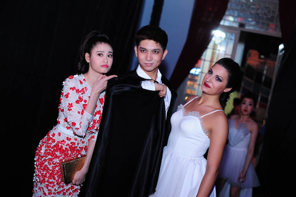 | Cô không quên tạo dáng nhí nhảnh bên ông xã và cô bạn nhảy Vicki khi các phóng viên đề nghị chụp hình. Tim là một trong những thí sinh khá lận đận của chương trình. Có liveshow, anh phải đổi bạn nhảy tới 2 lần vì chấn thương. Tuy nhiên, hiện tại sức khỏe của Vicki đã hồi phục và cô luôn hết lòng hỗ trợ nam ca sĩ. |