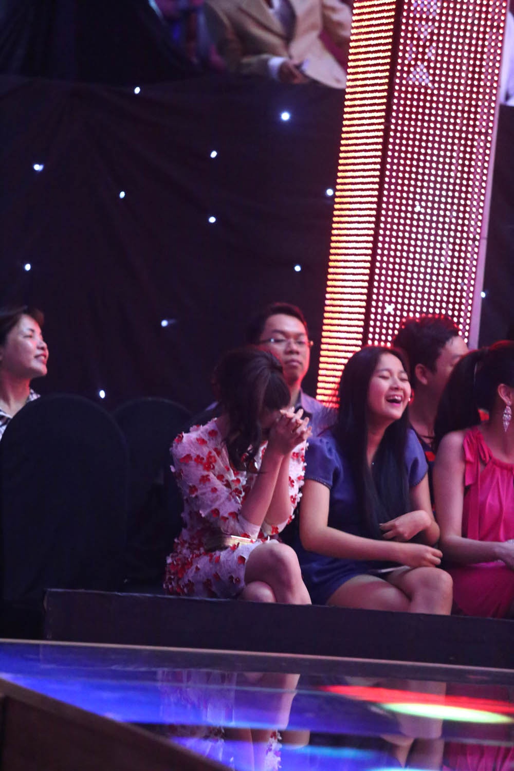 | Bạn bè, khán giả ngồi quanh Quỳnh Anh cũng bất ngờ với tiết mục của Tim. |