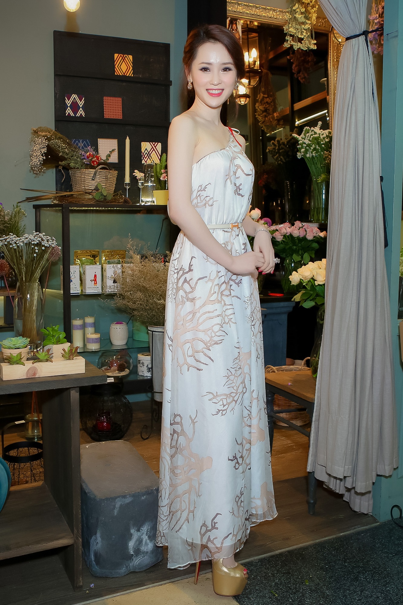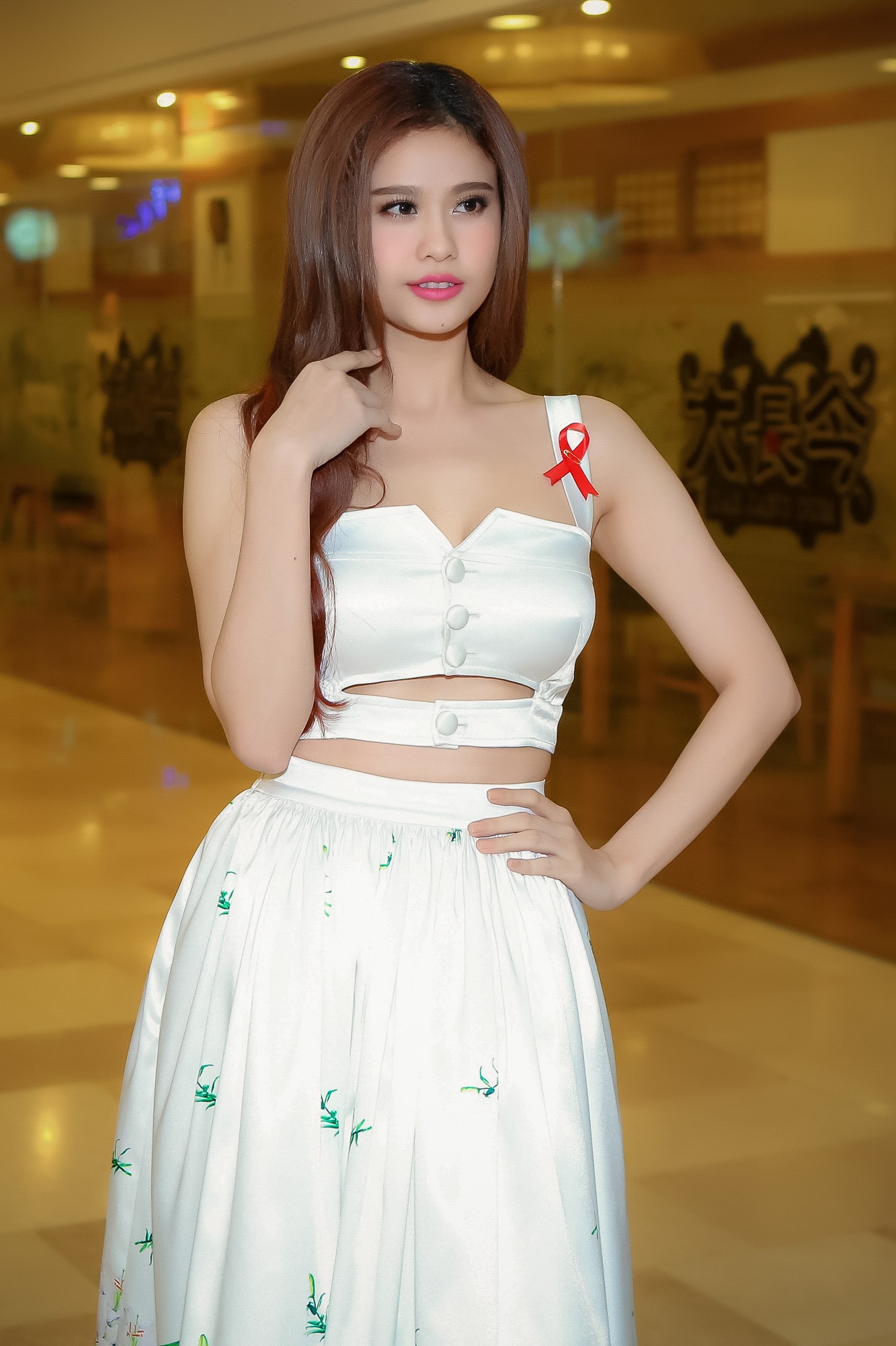 | Á hậu Thái Như Ngọc diện đầm một vai thanh lịch, nhẹ nhàng của Valentino đến dự tiệc. Ngoài tặng ban tổ chức đồ hiệu, người đẹp còn ủng hộ tiền mặt. |