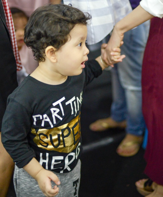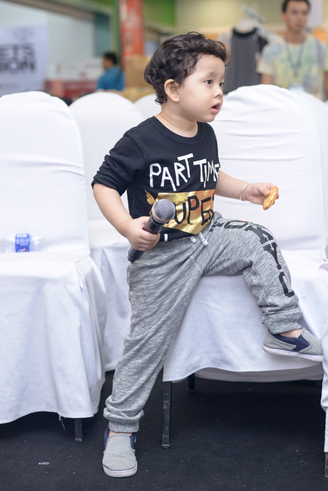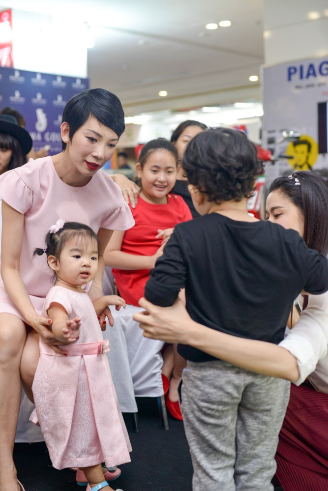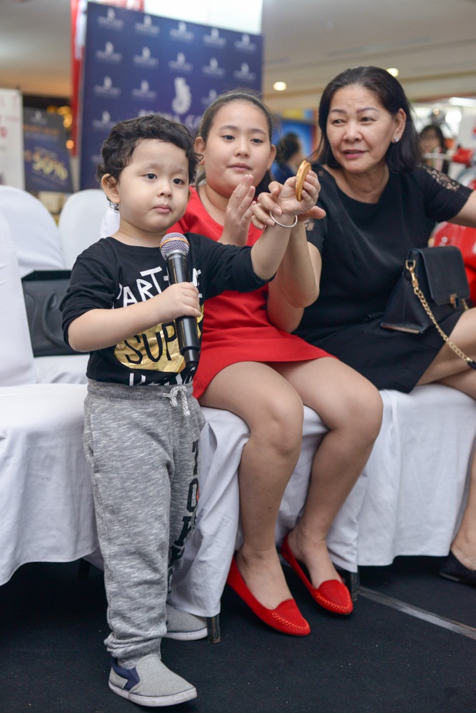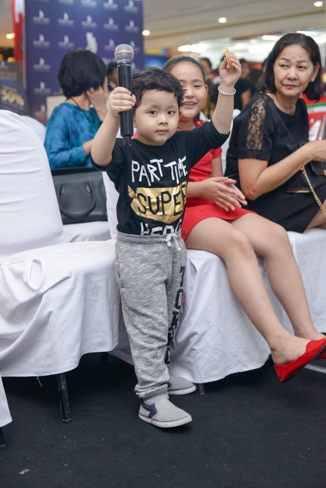 | Tham dự sự kiện, cậu ấm nhà Trương Quỳnh Anh tỏ ra khá bạo dạn nơi đông người khi thoải mái chơi đùa và trả lời các câu hỏi của mọi người. |