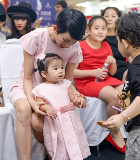 | Sự xuất hiện của hai mẹ con thu hút sự chú ý của người hâm mộ. Trương Quỳnh Anh cẩn thận chọn lựa đồ cho con trai.