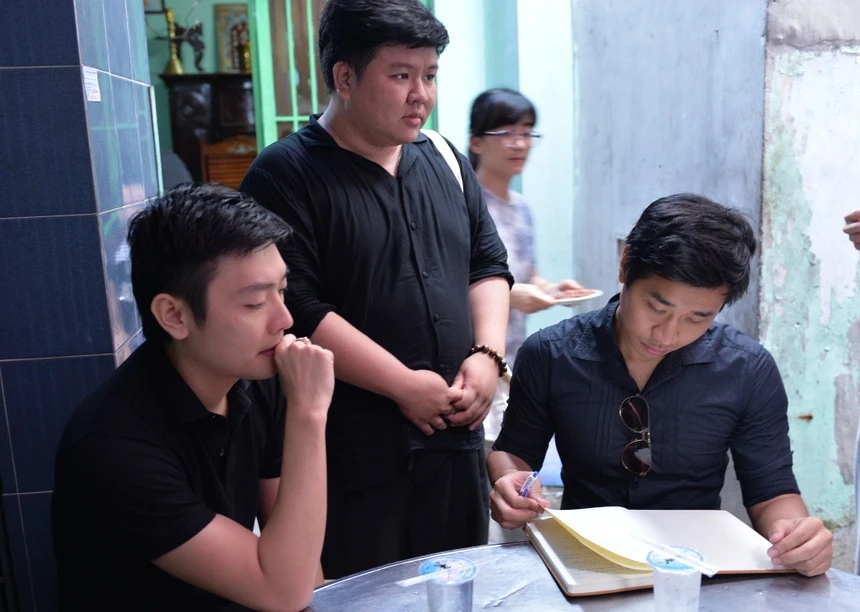 Mỗi khi không bận quay hình, MC sinh năm 1984 đều đến thắp hương, hỗ trợ gia đình lo hậu sự. Anh và bạn bè viết những lời thương tiếc Quang Minh trong sổ tang.
