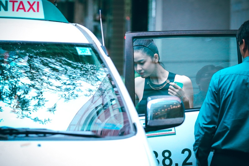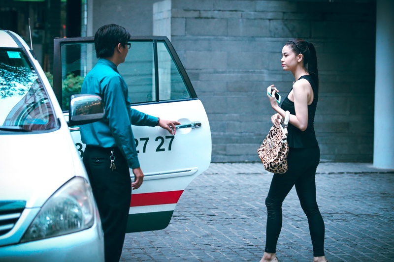 Cô gọi taxi để về nhà.