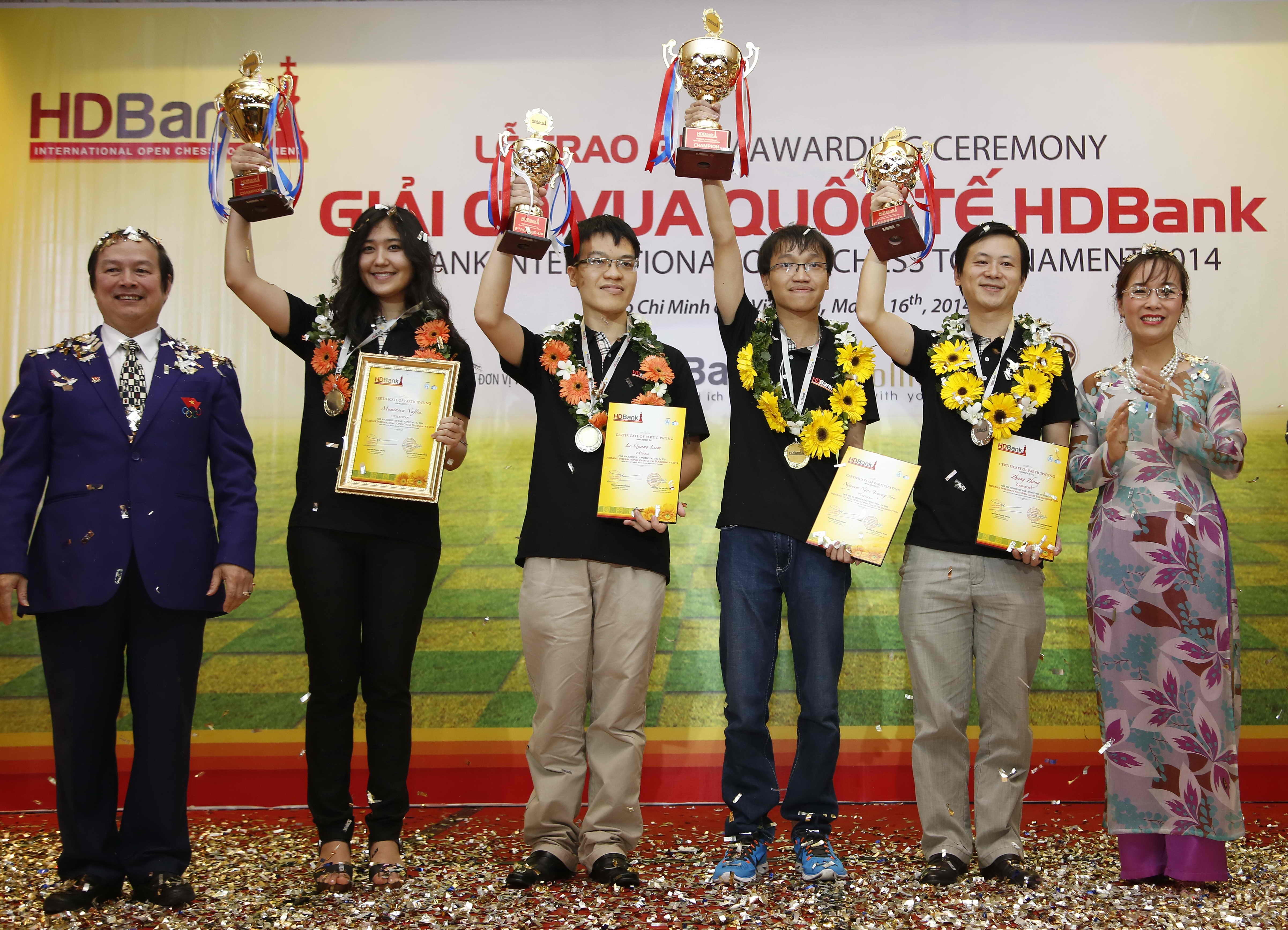 | 4 kỳ thủ xuất sắc nhất giải. Lê Quang Liêm tuy là hạt giống số 1 của giải nhưng chỉ đứng hạng 3. Anh kết thúc giải đấu chỉ được cộng thêm 0,7 elo. |