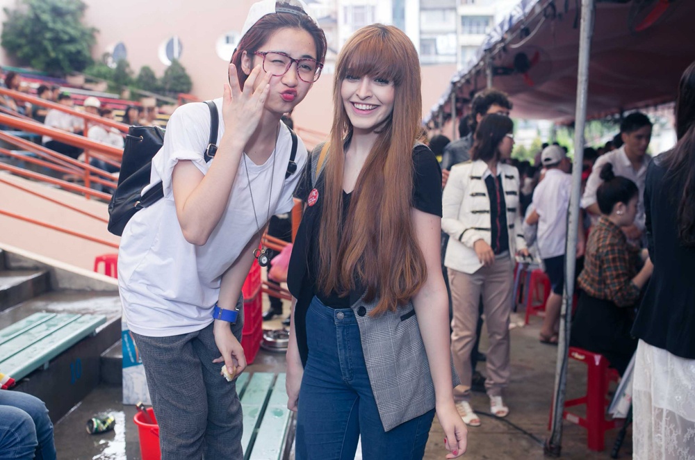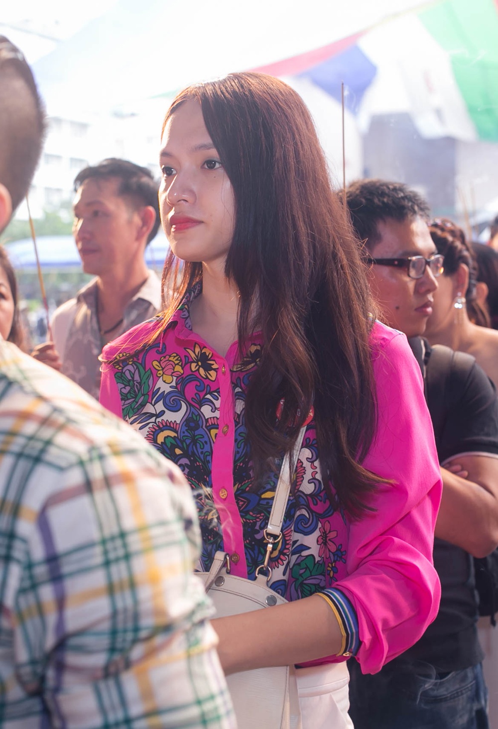 | Hương Giang Idol lặng lẽ đứng xếp hàng một mình. Mới đây, cô vừa trở thành nhà vô địch trong chương trình Cuộc đua kỳ thú 2014. |