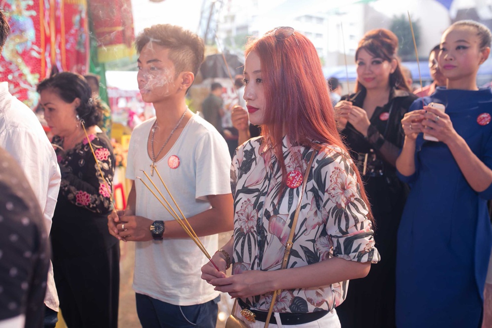 Trưa 5/9, Trương Thị May cùng mẹ đến cúng Tổ tại sân khấu kịch của diễ viên hài Minh Béo. |