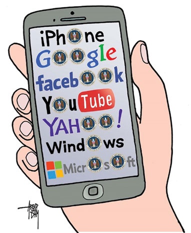 Thế giới 2013 dưới mắt các họa sĩ biếm có thêm sắc màu của truyền thông xã hội. Từ nghiện Twitter, Facebook đến mặt trái của truyền thông xã hội, khi chúng bị lợi dụng trở thành công cụ do thám, bắt nạt, soi mói đời tư... là những đề tài được các họa sĩ biếm thế giới ghi nhận.