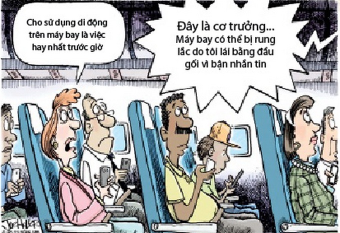 | Sốt nhắn tin trên máy bay - Biếm họa của Joseph Heller |