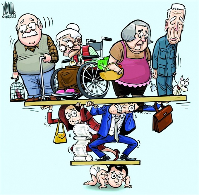 | Chính sách Một con - Những đứa con một của Trung Quốc đang phải gánh các vấn đề xã hội thế này đây! - Tranh của LUOJIE. |