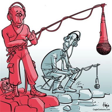 | Làm nguyên thủ thời do thám! - Biếm họa của HAJO DE REIJGER. |