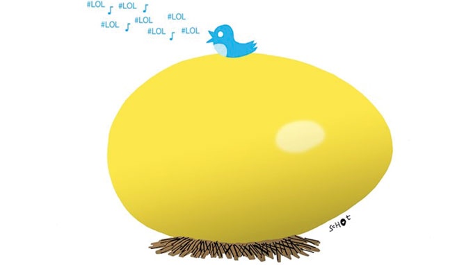| Nghiện Twitter LOL: Ký hiệu sử dụng trên Internet, có nghĩa 'buồn cười quá' - Tranh của SCHOT, DE VOLKSKRANT. |
