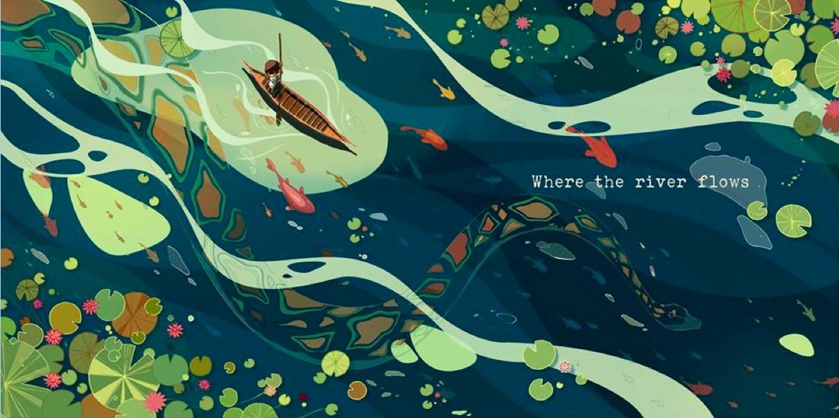 Trong lúc bàn kịch bản, chúng tôi nghĩ về hình ảnh của một chiếc thuyền rất nhỏ đi trên sông và bên dưới là một con rắn khổng lồ, và cả Quang và Liên đều cực kì thích hình ảnh này đến mức quyết định làm cuốn sách từ nó luôn. Nó cũng là trang đầu tiên mà chúng tôi vẽ về cuốn truyện này.