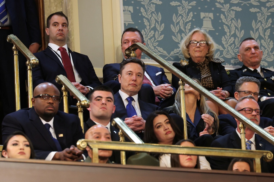 Tỷ phú Elon Musk được sắp xếp ngồi tại khu vực dành riêng cho khách mời của Nhà Trắng trong buổi phát biểu trước Quốc hội của ông Trump. Ảnh: Reuters. |